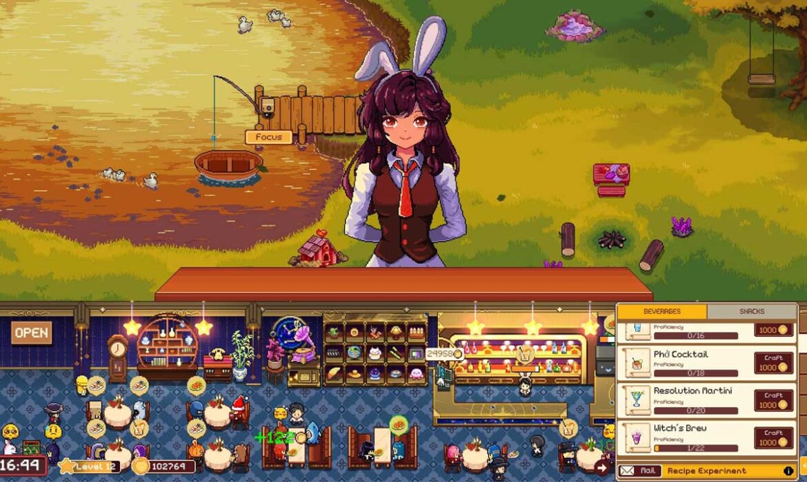 Në Lakeside Bar është koha për të drejtuar barin e koktejleve të ëndrrave tuaja. Këtu mund ta zgjeroni barin tuaj, të punësoni staf, t’i trajnoni ata, të zbuloni receta të reja për pije dhe meze, të bëheni mjeshtër recetash, të peshkoni në liqen, të vendosni për menunë, të rimbushni furnizimin… dhe më e mira nga të gjitha? Pa stres sepse klientët nuk largohen sepse nuk shërbehen si në lojërat e tjera. Kështu që mund të shkoni me ritmin tuaj dhe të vendosni miliona tavolina si një vendstrehim ose vetëm disa të vogla dhe t’i dekoroni ato.